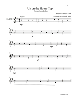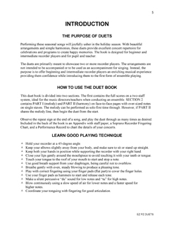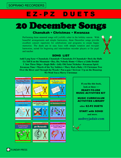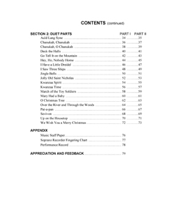 Performing these seasonal songs will joyfully usher in the holiday season. With beautiful arrangements and simple harmonies, these December songs provide excellent concert repertoire for celebrations and programs to create happy memories. The duets are in easy keys with simple notation and two-part playing, suited for beginning and intermediate recorder players or for pupil and teacher.