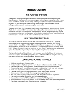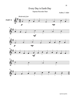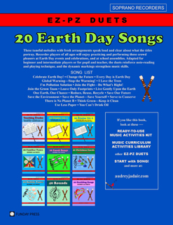 These tuneful melodies with fresh arrangements speak loud and clear about what the titles portray. Recorder players of all ages will enjoy practicing and performing these crowd pleasers at Earth Day events and celebrations, and at school assemblies. Adapted for beginner and intermediate players or for pupil and teacher, the duets reinforce note-reading and playing technique, and the dynamic markings strengthen music skills.