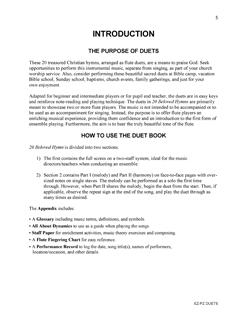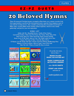 These 20 treasured Christian hymns, arranged as flute duets, are a means to praise God. Seek opportunities to perform this instrumental music, separate from singing, as part of your church worship service. Also, consider performing these beautiful sacred duets at Bible camp, vacation Bible school, Sunday school, baptisms, church events, family gatherings, and just for your own enjoyment.