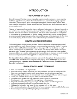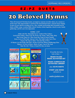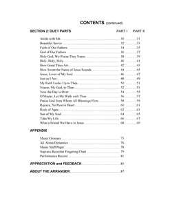 These 20 treasured Christian hymns, arranged as soprano recorder duets, are a means to praise God. Seek opportunities to perform this instrumental music, separate from singing, as part of your church worship service. Also, consider performing these beautiful sacred duets at Bible camp, vacation Bible school, Sunday school, baptisms, church events, family gatherings, and for your own enjoyment.