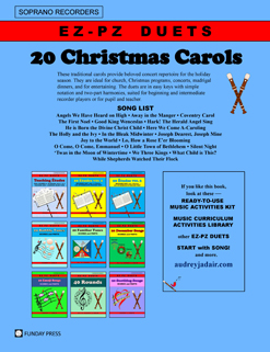 These traditional carols provide beloved concert repertoire for the holiday season. They are ideal for church, Christmas programs, concerts, madrigal dinners, and for entertaining. The duets are in easy keys with simple notation and two-part harmonies, suited for beginning and intermediate recorder players or for pupil and teacher.