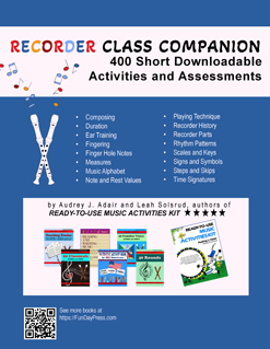 The purpose of the RECORDER CLASS COMPANION is to give the music teacher a variety of highly motivating, ready-to-use short activities. The key is to help students develop essential note-reading skills, understand music concepts, learn music theory, and gain basic music knowledge while learning to play the recorder.